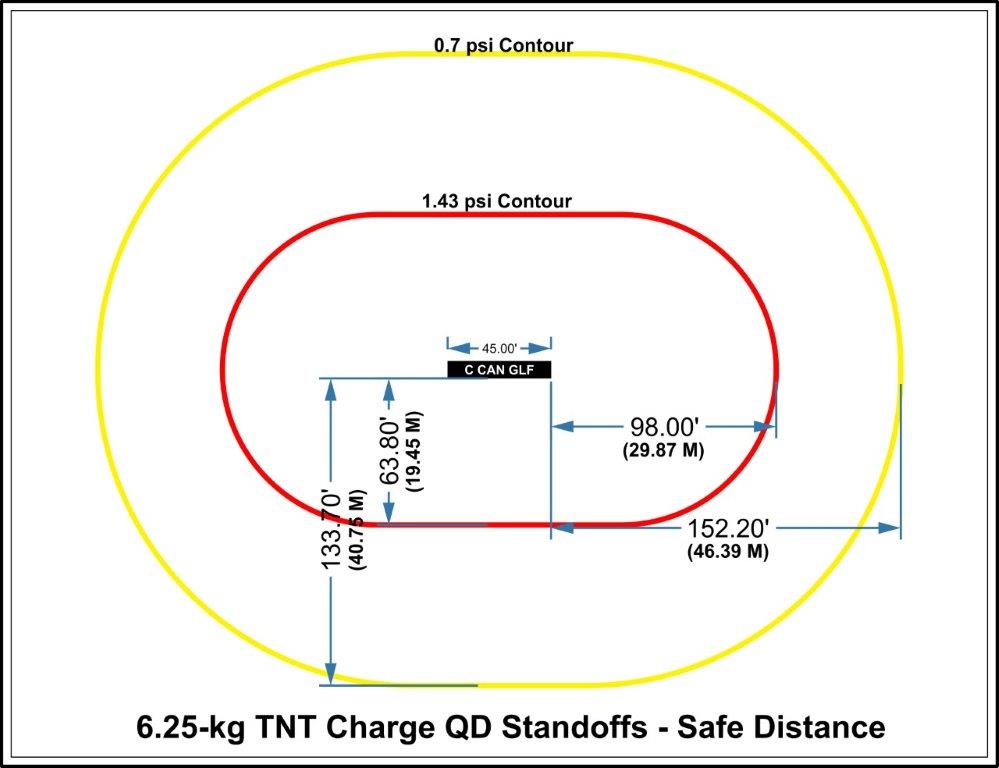 The Methodology of the Walker's GLF and explosives storage MAG is to reduce the atmospheric pressure and contain debris from a pre-determined blast condition. Computational fluid dynamics modeling "specific to the Net Explosives Quantities (NEQ)" determines the safe distance required from the GLF or GSF.